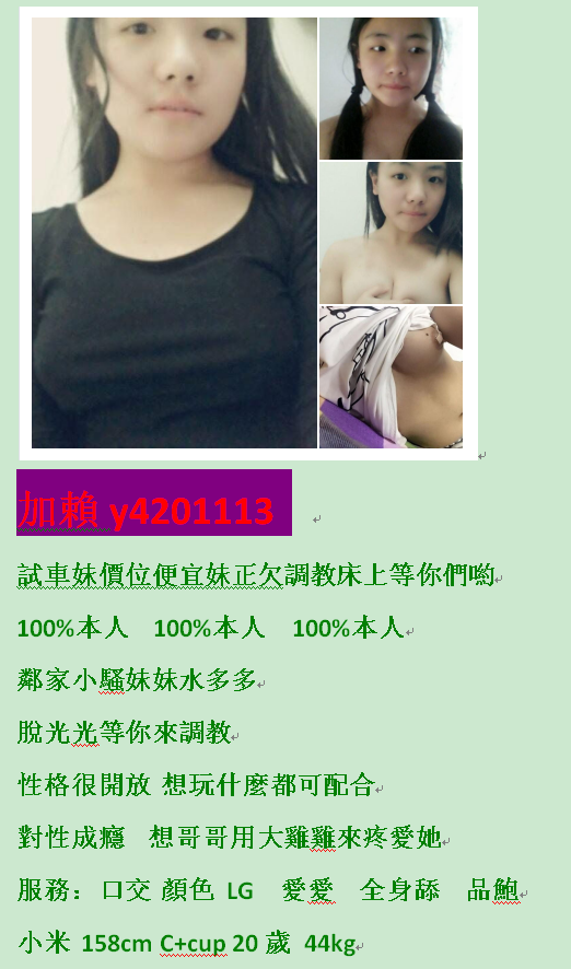 加頼:y4201113喜歡清純 可愛 火辣 騷的人可以加哦 妹妹的類型很多喔 可以 滿足你的任何需求喔